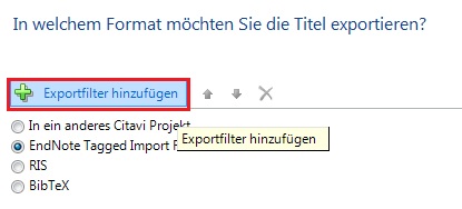Steht der Filter noch nicht zur Verfügung, klicken Sie auf "Exportfilter hinzufügen", wählen "Stud.IP" aus der Liste und bestätigen mit einem Klick auf "hinzufügen."