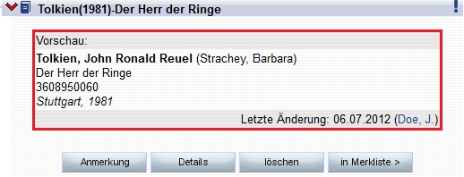 Abschließend sehen Sie noch einmal den Beispieltitel aus Citavi, der exportiert wurde und die Ansicht des Imports in Stud.IP.