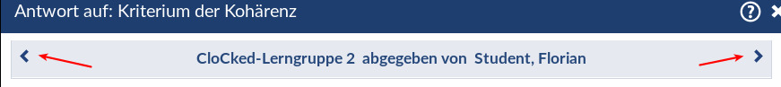 Wenn Sie das Feedback gespeichert haben, schließt sich das Fenster nicht automatisch, sondern Sie können über die Pfeiltasten in der Kopfzeile direkt zur nächsten Antwort springen.