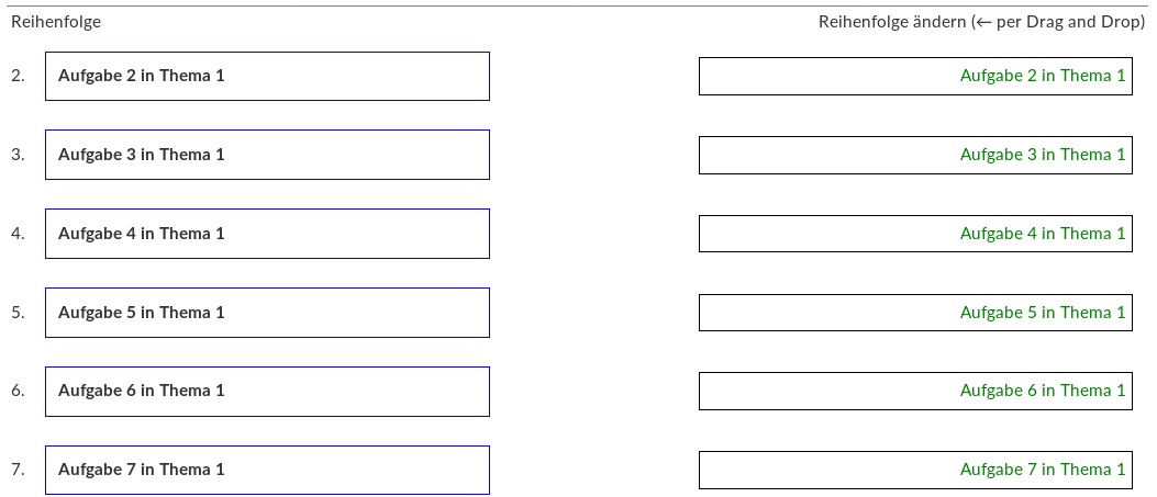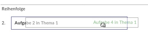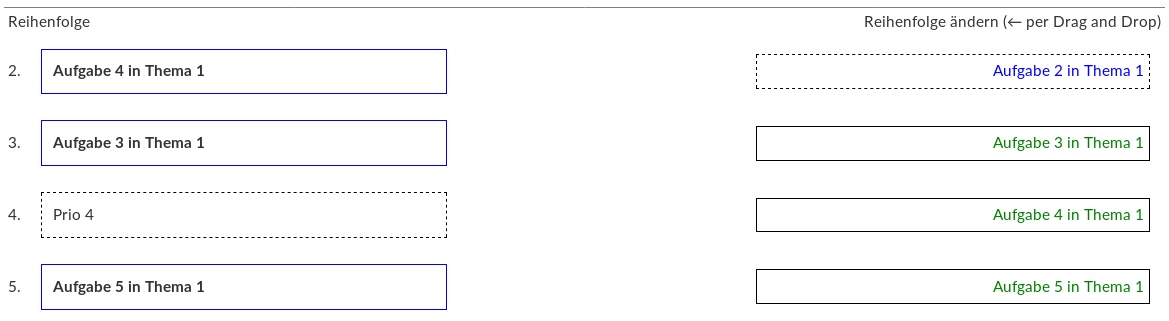 Gleichzeitig ist die "Aufgabe 2 in Thema 1" nicht mehr in der Reihenfolge enthalten (blaue Schrift) und die 4. Position ist frei geworden.
