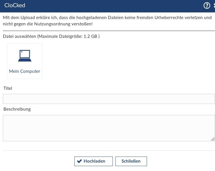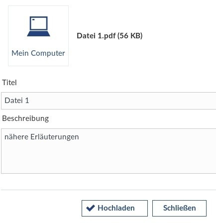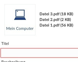 Bitte beachten: Die maximal erlaubte Dateigröße kann variieren. Durch einen Klick auf „mein Computer“ kann ich eine oder mehrere Dateien von meinem Computer auswählen. Je nach Betriebssystem wird das dortige Dateiverwaltungsprogramm gestartet. (Windows -> Datei-Explorer, Linux -> z.B. Nautilus, Mac -> Finder)