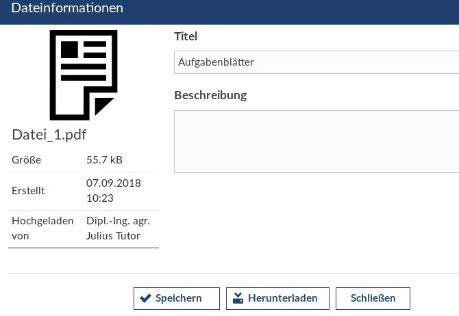 Wenn keine Änderungsberechtigungen vorhanden sind, können Titel und Beschreibung nicht verändert werden und der "Speichern"-Button fehlt.