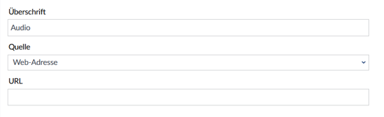Im Feld Quelle wird festgelegt, ob die Audio-Dateien von einer externen URL-Adresse oder aus dem Stud.IP-Dateibereich eingebunden wird.