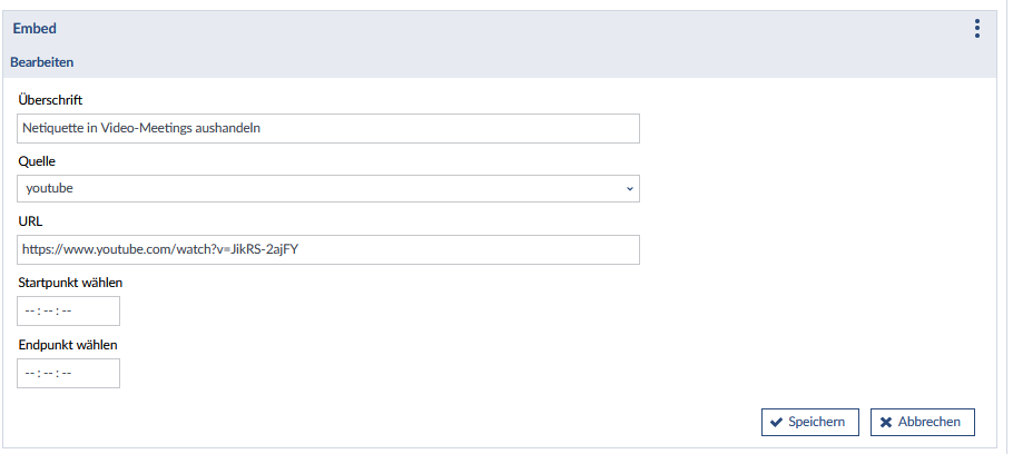 Videos von Youtube können mit einem Start- und Endzeitpunkt versehen werden, wenn nur Ausschnitte aus diesen angesehen werden sollen: