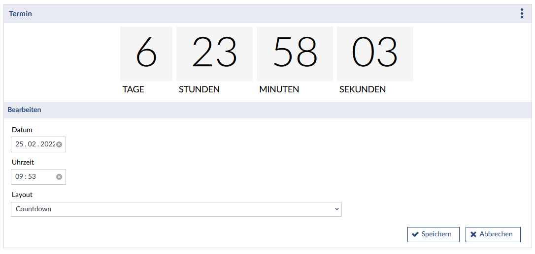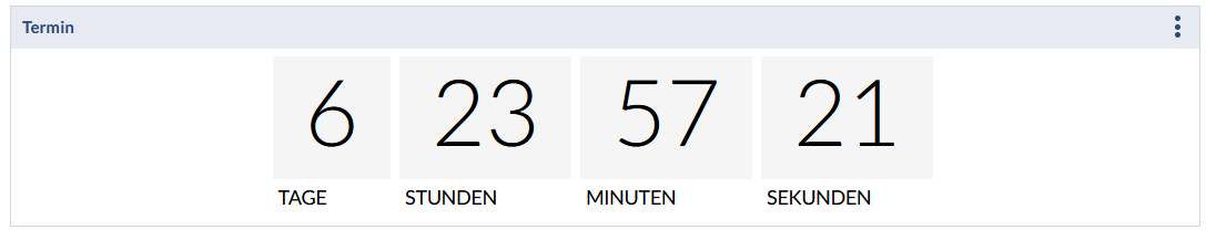 Der Termin-Block kann einen Termin als Datum oder als Countdown bis zu einem bestimmten Datum anzeigen.