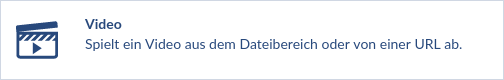 Der Video Block kann Videodateien aus dem Dateibereich oder von einer URL abspielen. Achten Sie bei einer URL bitte darauf, dass diese direkt auf eine Videodatei zeigt, z.B. auf .mp4 endet.