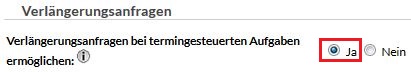- Unter dem Navigationspunkt "Optionen" in dem Absatz "Verlängerungsanfragen" setzten Sie die Auswahl auf "Ja". Speichern Sie Ihre Einstellung. Eine genaue Erklärung zu den Optionen finden Sie hier.