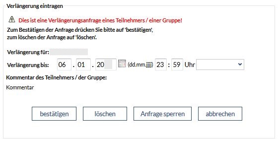 Unter dem neu erschienenen Menüpunkt "Offene Verlängerungsanfragen" befindet sich eine Auflistung aller Anfragen.