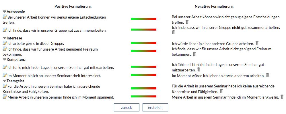 Formulieren Sie eine positive und die dazugehörige negative Äußerung. Speichern Sie Ihre Frage.