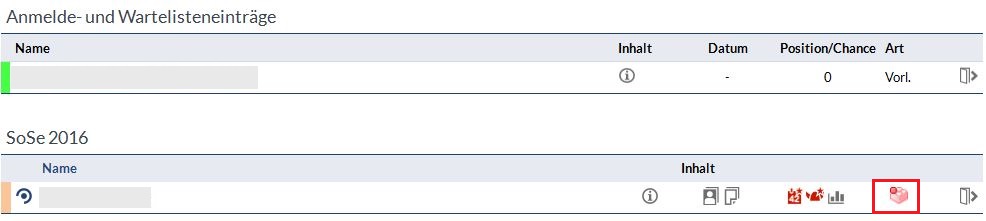 Auf der Übersichtsseite Ihrer Veranstaltungen erscheint DoIT als kleines Baustein-Symbol, wenn es aktiviert wurde.