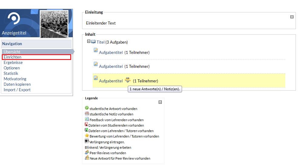 neben einem Thema oder einer Aufgabe symbolisiert Ihnen, dass sich hier etwas verändert hat, so z.B. neue Antworten vorliegen, neue Dateien hochgeladen wurden oder Ihr Tutor einen Aufgabentext erstellt hat. Sobald Sie mit der Maus darüber fahren, erhalten Sie detailliertere Informationen.