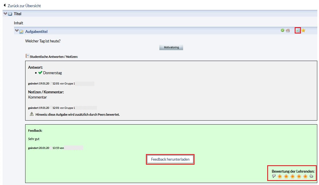 Wenn Sie auf die Aufgabe klicken, erhalten Sie eine Übersicht des Feedbacks und die Möglichkeit, es herunterzuladen.