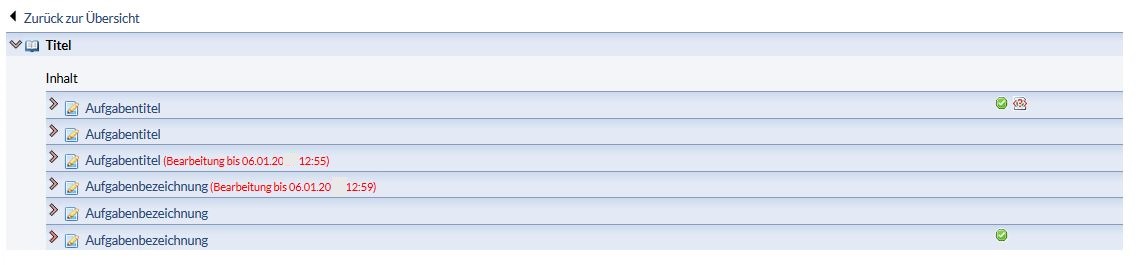 Vielfach werden für einzelne Aufgaben Fristen für die Bearbeitung eingestellt. Ist eine Frist abgelaufen, bedeutet das noch nicht, dass Sie die Aufgabe nicht mehr bearbeiten können.