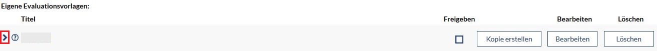 Die kopierte Vorlage erscheint -nachdem Sie auf den Pfeil geklickt haben- in der Liste Ihrer Evalutionsvorlagen.
