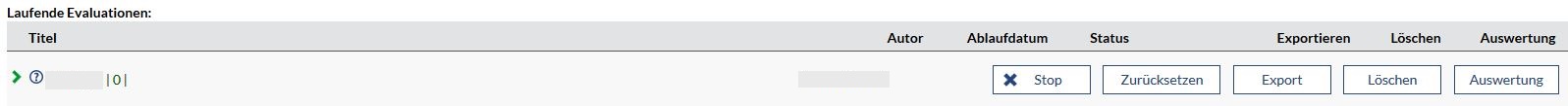 • Stop: Die Evaluation wird angehalten. Der Fragebogen kann nun nicht mehr ausgefüllt werden.