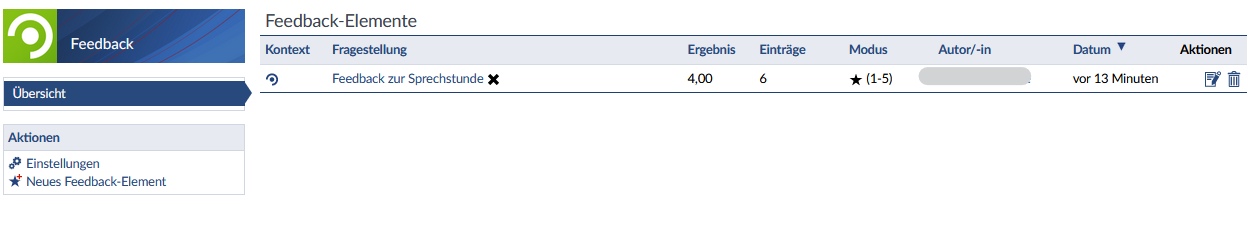 Auch allgemeine Feedback-Elemente können von hier aus über Neues Feedback-Element angelegt werden: