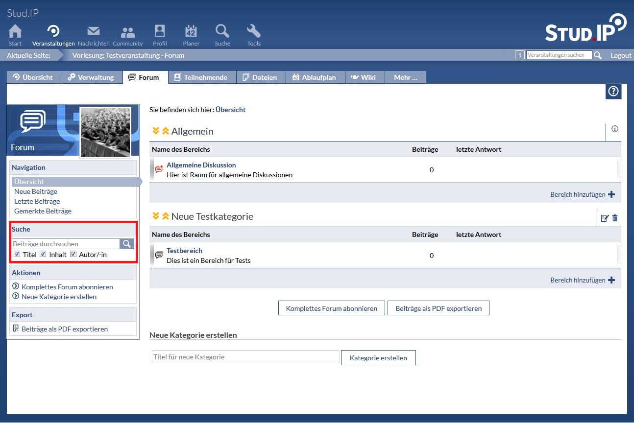 Links in der Sidebar ist es möglich das Forum nach Titel, Inhalt oder Autor zu durchsuchen. Je nachdem wonach Sie das Forum durchsuchen möchten, können Sie ein Häkchen auf den jeweiligen Punkt setzen und eingeben, wonach das Forum durchsucht werden muss. Nach der Texteingabe klicken Sie auf das Lupensymbol, damit das Forum nach Ihrem Wunsch durchsucht werden kann.