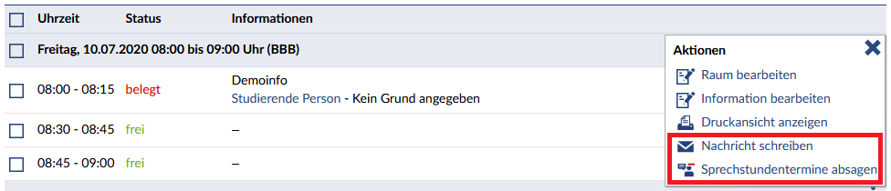 Die jeweiligen Personen erhalten eine Nachricht über die Absage und die ursprünglich gebuchten Termine verschwinden aus Ihrem persönlichen Terminplaner.