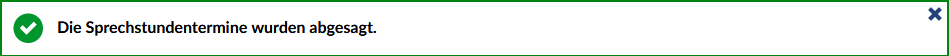 . Bei erfolgreicher Absage erscheint eine Systemmeldung.