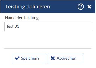 Ein neues Fenster erscheint. In diesem Fenster können Sie der Leistung einen Namen geben. Wenn Sie den Namen der Leistung eingetragen haben, dann speichern Sie Ihre Einstellungen mit dem Button "Speichern".