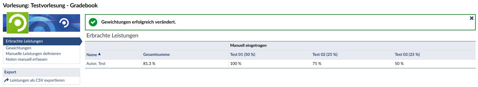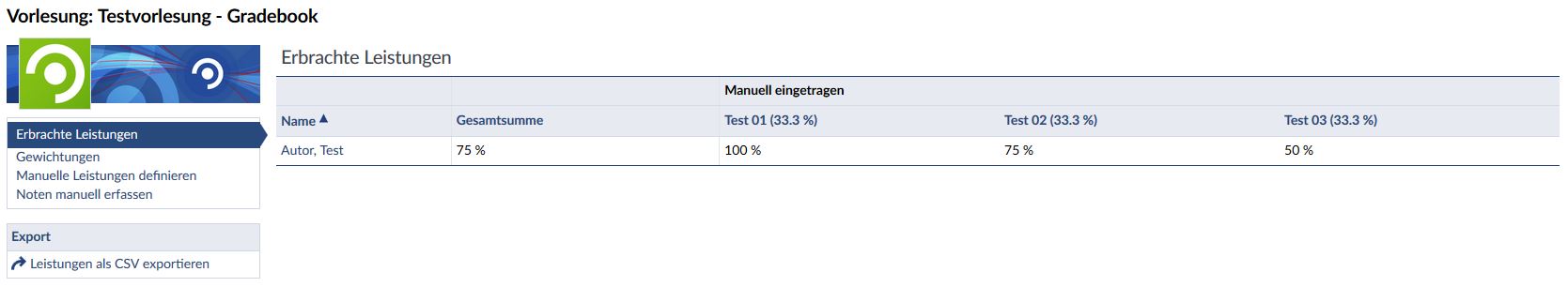 Das Gradebook ist ein Plugin, welches die Noten- und Fortschrittserfassung ermöglicht. Zudem kann mit dem Gradebook die manuelle und automatische Erfassung von Noten und Leistungen erfolgen. Außerdem kann mit dem Gradebook folgendes gemacht werden: