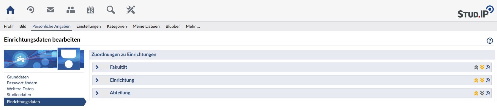 Unter dem Reiter „Einrichtungsdaten“ finden Sie die Einrichtungen aufgelistet unter denen Sie im UniVZ eingetragen wurden.