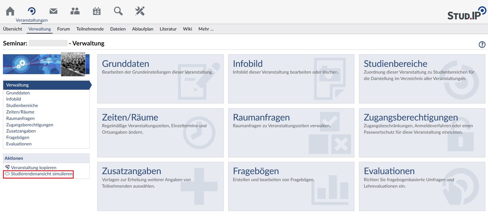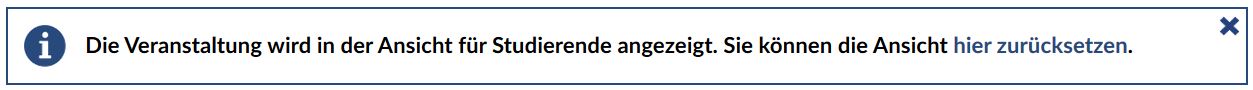 Wenn Sie als Lehrender wissen möchten, wie eine Ihrer Veranstaltungen aus Sicht der Teilnehmenden aussieht, nutzen Sie die Funktion "Studierendenansicht simulieren".