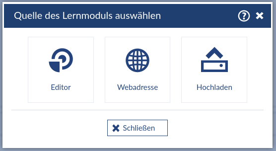 In beiden Fällen öffnet sich ein neues Fenster, in dem Sie die Quelle des Lernmoduls festlegen müssen.