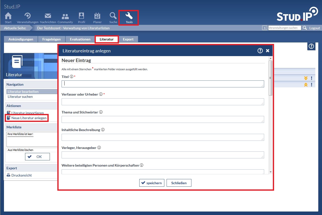 Um Literatur zu erfassen benutzen Sie die Eingabemaske, die Sie unter "Tools" -> "Literatur" -> "Neue Literatur anlegen" finden.