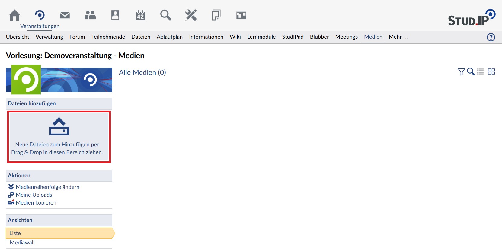 Wechseln Sie in die Übersicht Ihrer Veranstaltung. Anschließend wählen Sie die Registerkarte Medien aus.