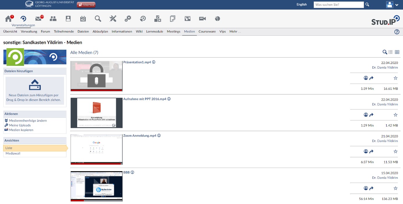 Sie können in der Medienansicht alle Ihre hochgeladenen Videos sehen.