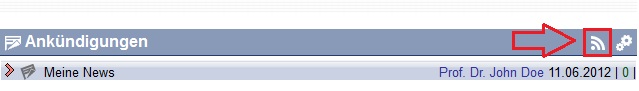Stud.IP bietet Ihnen auch die Möglichkeit, selbst RSS-Feeds anzubieten. So können andere Stud.IP-Nutzer, oder falls Sie DozentIn sind, auch TeilnehmerInnen Ihrer Veranstaltung, Neuigkeiten als Feed abonnieren.