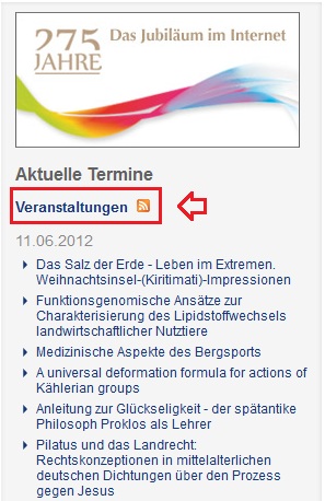 Auf der Übersichtsseite des jeweiligen Bereichs findet sich daher auch das RSS-Symbol: