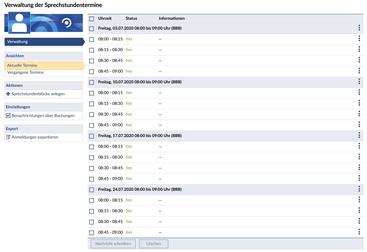 - Ende: An diesem Datum findet der letzte Sprechstundentermin statt.