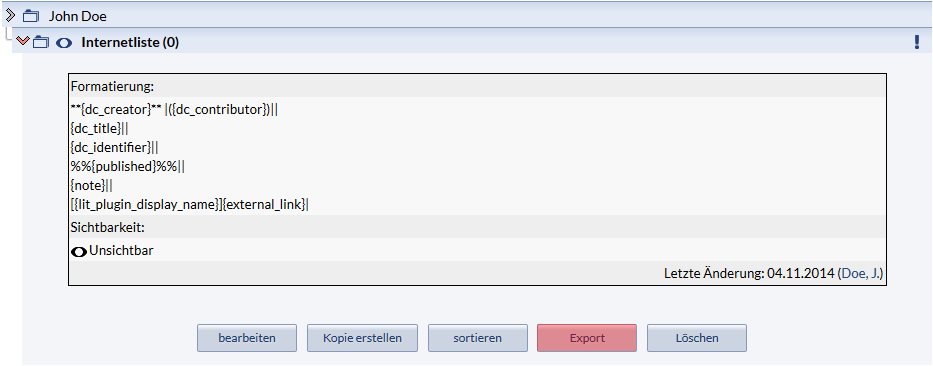 5. Wählen Sie die gewünschte Literaturliste und klicken Sie auf Export.