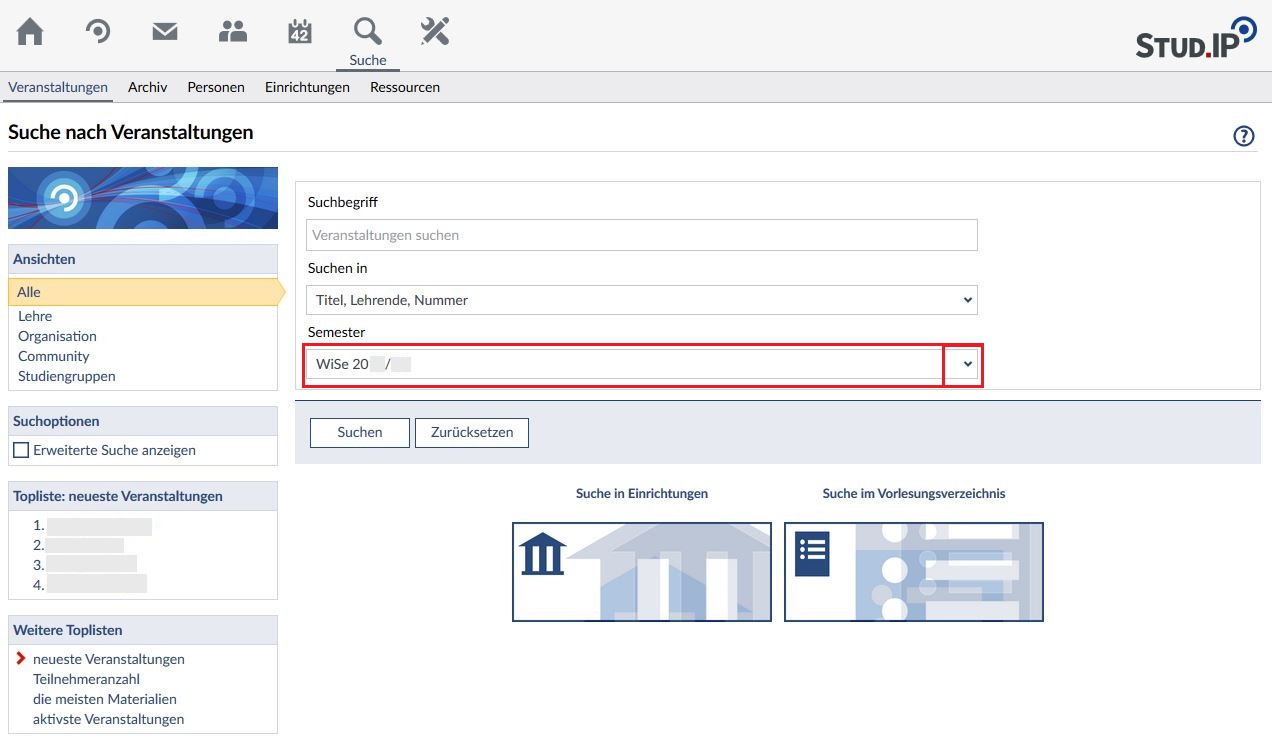 Das Archiv ist der Keller oder Dachboden von Stud.IP. Sie können hier nach Veranstaltungen der vergangenen Semester suchen und haben, entsprechende Rechte vorausgesetzt, Zugriff auf Informationen zur Veranstaltung und alle damals hochgeladenen Dateien.