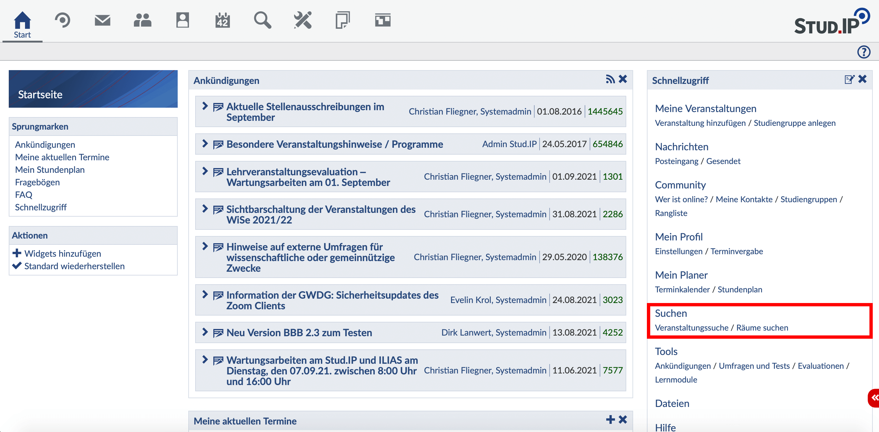 Es gibt verschiedene Möglichkeiten eine Veranstaltung zu suchen: