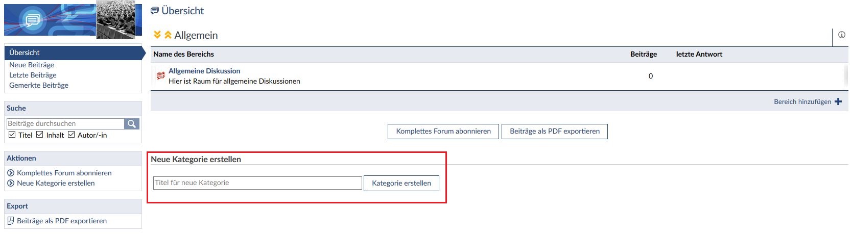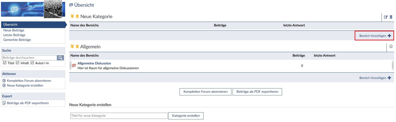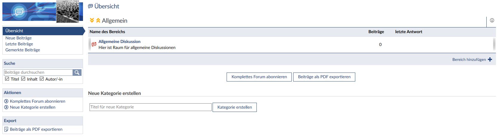 Auf dieser Seite wird Ihnen eine Übersicht der jeweiligen Kategorien und Bereiche angezeigt. Kategorien sind die Oberthemen. In den Kategorien können Bereiche erstellt werden. In den Bereichen kann man Themen erstellen, in denen die jeweiligen Diskussionen stattfinden können. Bereits angelegte Kategorien, und ob in diesen bereits Beiträge vorhanden sind, sehen Sie hier.