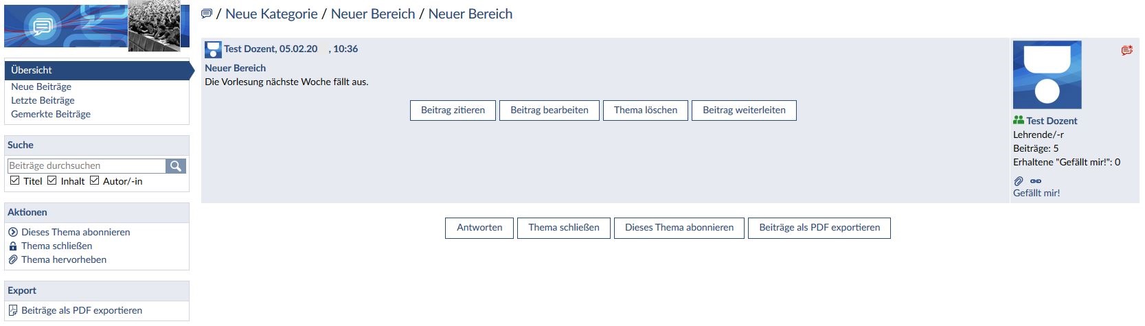 Wählen Sie dann im Veranstaltungsbereich den Reiter Forum aus: