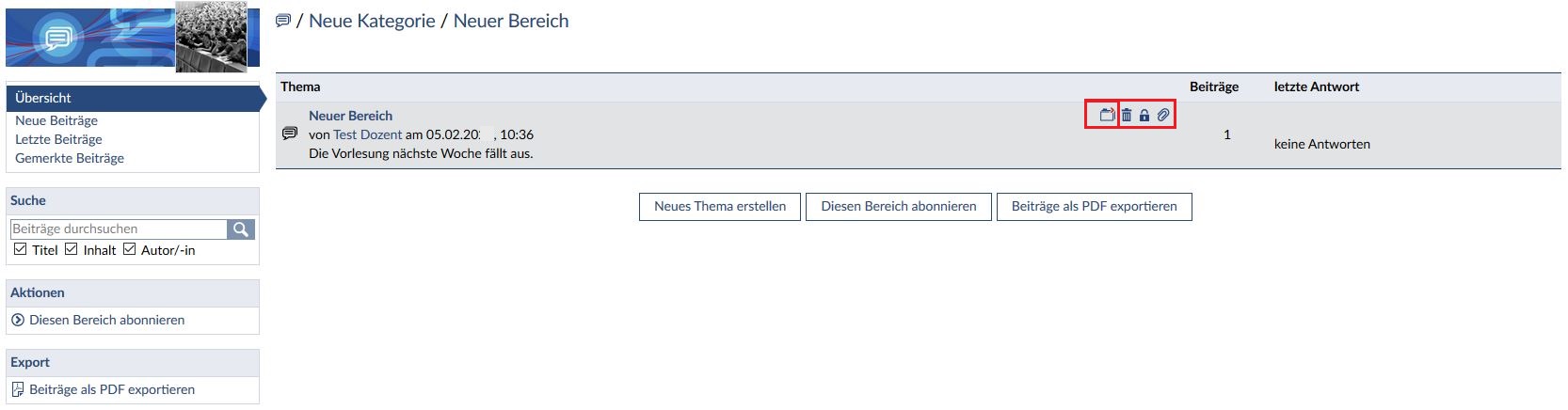 Das Symbol, welches in Ihrer Veranstaltungsübersicht für das Forum steht, ist die Sprechblase: