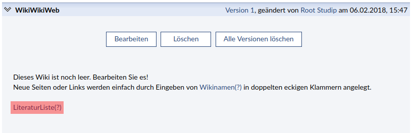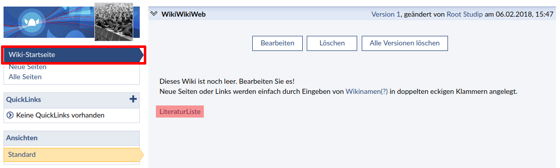 - Wenn Sie noch nie mit dem Wiki in einer Veranstaltung gearbeitet haben, sieht die Wiki-Startseite so aus: