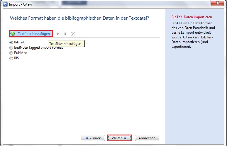 6. For the last step please click on "cancel". The importfilter got ad to Citavi.