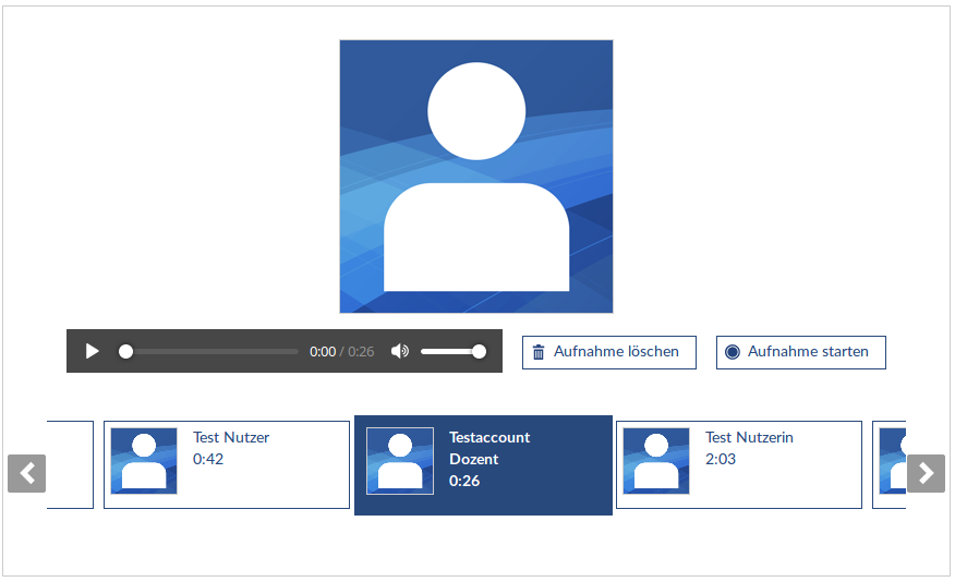 In the audio gallery, participants can record an audio file with their own device. Either the microphone, headset or smartphones are required for this.