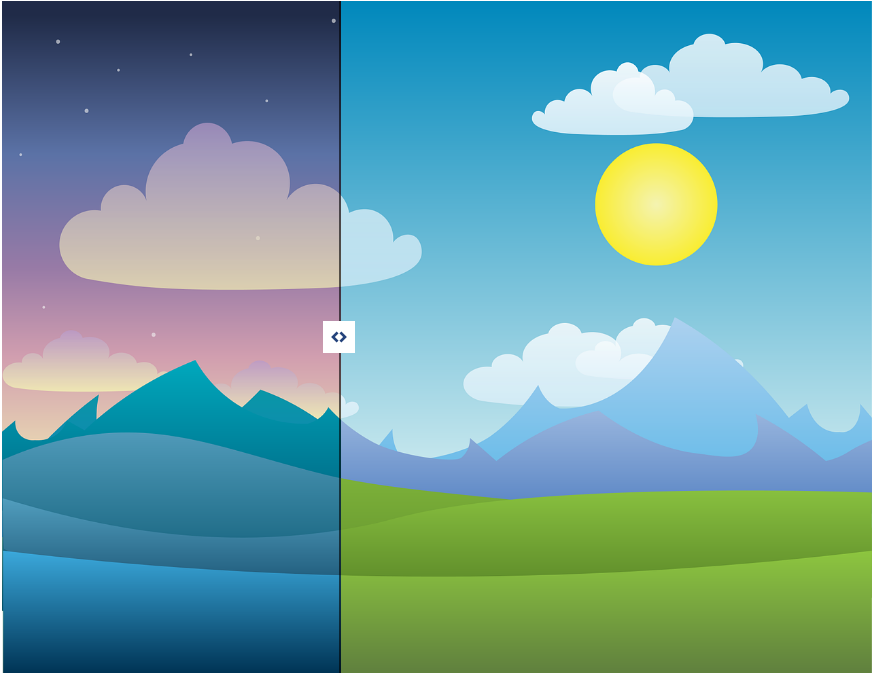 The image comparison block enables a direct comparison between two images. One picture can be superimposed on another with a slider. The images can be loaded from a URL or from the files area.