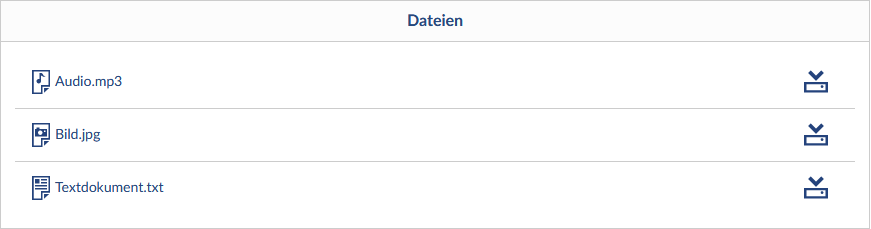 With the file folder block, a folder from the file area of the event can be integrated. The contents of the folder are listed and made available for download. The upload of files can optionally be allowed. This option is always active when a homework folder is selected.