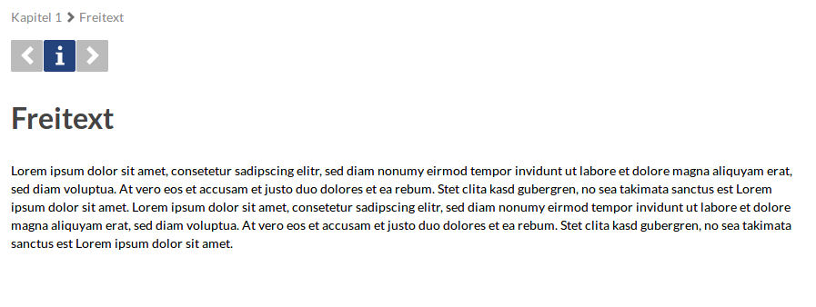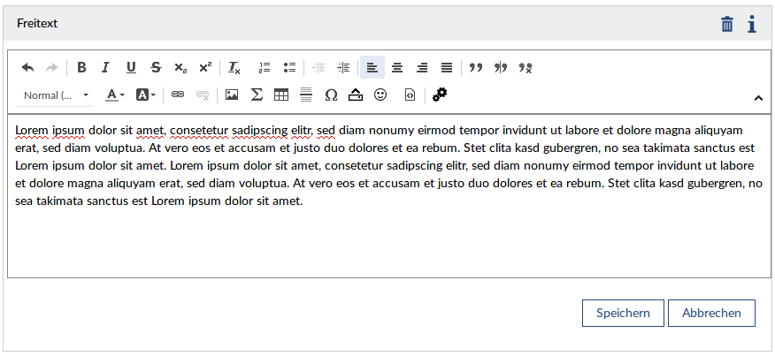 Free text blocks contain texts of any length that can be created and formatted using a WYSIWYG editor. The WYSIWYG editor also enables the integration of images and external links.