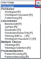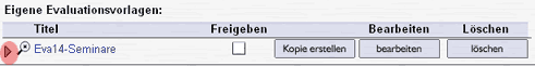 In Area 3 all the templates which you yourself have prepared or that you found in Stud.IP and have added to Area 3 are displayed. To use these templates, you must add them here (i.e. to the list of your evaluation templates).