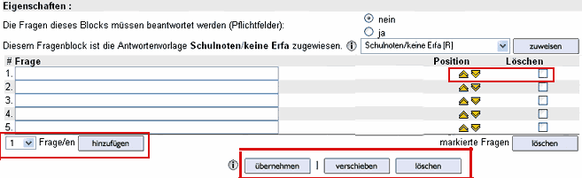 in this context, mark them either "yes" or "no" (the decision then applies for all the question in the block/the entire block)
