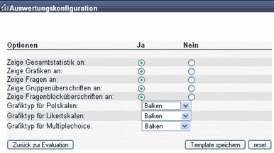 You can have your evaluation analysed by Stud.IP. Both the absolute and percentage frequency are stated. Additionally, the frequencies are presented graphically. You can also have the evaluation output as a PDF file.