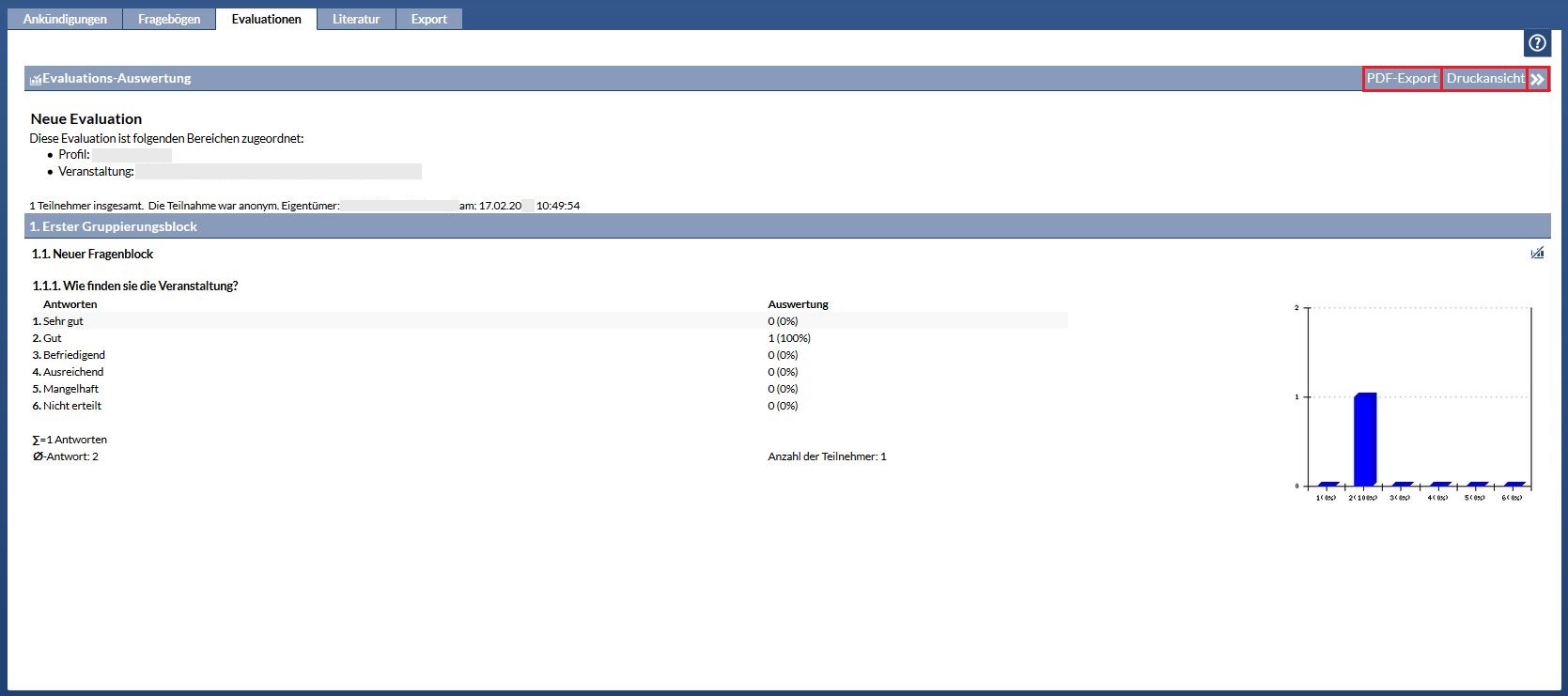 You can asses your evaluation results through Stud.IP